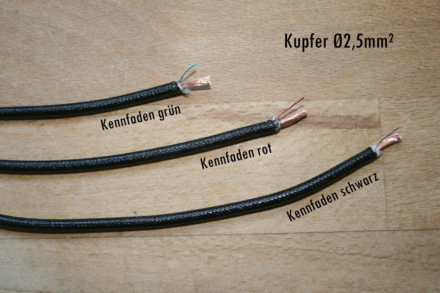 Die Beschichtung und das Geflecht sind identisch, die Farbe erkennt man an einem roten Faden (Kennfaden), der beim Abisolieren sichtbar wird.